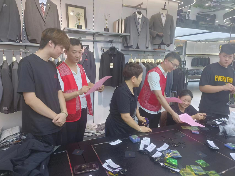 隨后,黨員們深入錢塘衣城各商戶,發(fā)放防汛知識手冊。他們結(jié)合“7·20”特大暴雨真實(shí)案例,向商戶現(xiàn)場講解預(yù)警信號含義、暴雨洪澇危害及自救互救方法,提醒大家務(wù)必增強(qiáng)汛期安全意識,提前做好防范措施。